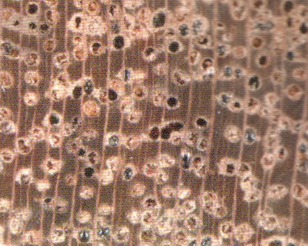 光澤弱;具樹脂氣味。紋理直;結(jié)構(gòu)粗,均勻;材質(zhì)中至重硬;強(qiáng)度高;干縮小。加工困難。含硅石和樹膠、易鈍鋸和黏鋸;刨面光滑;膠黏性能差;握釘力強(qiáng),釘釘須先鉆孔;油漆效果好。略耐腐。具抗酸性。干燥緩慢,易開裂翹曲。氣干密度0.7 ~ 0.8 g/cm3。