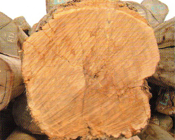 心邊材區(qū)別明顯。心材淺黃褐色,久則轉(zhuǎn)為巧克力褐色。邊材窄,金黃色。生長輪略可見。